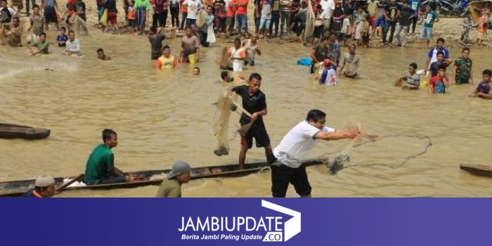 Pantauan di lapangan, ribuan masyarakat memenuhi pembukaan lubuk larangan di Tabir Raya, sedangkan HBA menaiki perahu dan terjun lansung ke sungai dengan modal sebuah jala.