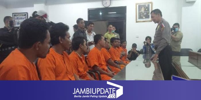 JAMBIUPDATE.COM, JAMBI - Kepolisian Daerah Jambi, berhasil meringkus sembilan pelaku pembakaran lahan di hutan konservasi Bertara, Kebupaten Tanjab Barat. Para pelaku diamankan Senin (31/8) lalu. Kini mereka diamankan di Mapolda Jambi.