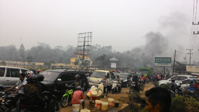 Akibatnya, jalanan macet sekitar satu kilo meter.