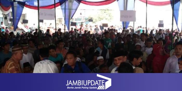 JAMBIUPDATE.COM, BATANGHARI-Ribuan massa menghadiri pelantikan dan pengukuhan Tim Koalisi dan Pemenangan Pasangan Sinwan-Arzani (Sinar) di Maro Sebo Ulu yang bertempat di Pasar Sungai Rengas.