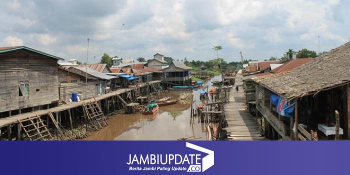 Situasi pemukiman di desa-desa Kecamatan Mendahara Ulu Kab Tanjung Jabung Timur, Jambi, sungai menjadi sarana transportasi. (Foto : Elviza Diana/Net)