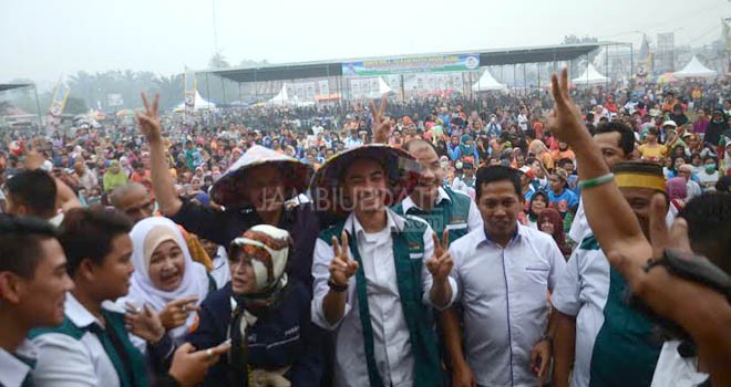 "Jambi ini butuh pabrik pengolahan sawit, Jambi butuh pabrik pengolahan karet, ini yang menjadi konsentrasi kita nanti, dan Insya Allah akan kita wujudkan demi kesejahteraan rakyat Jambi. Sehingga