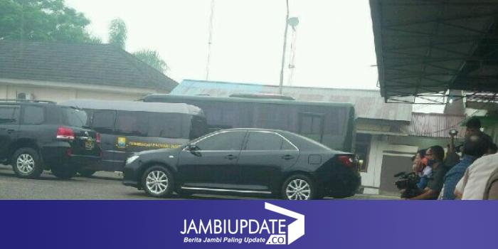 Pantauan jambiupdate sekitar pukul 12.00 WIB, di Bandara Sultan Thaha Jambi, kini hujan tengah mengguyur. Rombongan penyambun menteri juga mencari tempat berteduh.