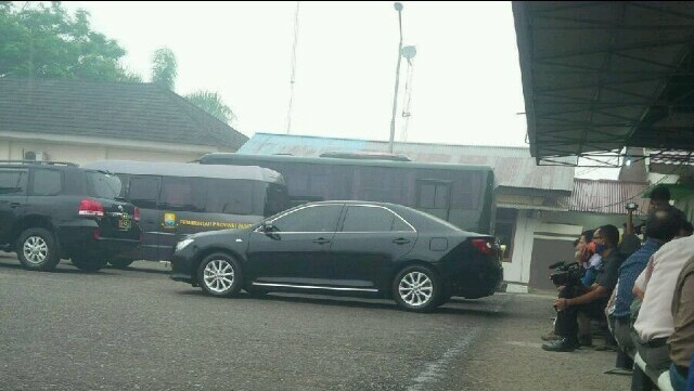 JAMBIUPDATE.COM, JAMBI - Berbulan-bulan ditunggu, akhirnya Jambi diguyur hujan. Hujan turun bertepatan dengan kedatangan rombongan Menteri, Selasa (27/10).