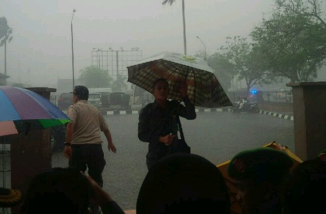 JAMBIUPDATE.COM, JAMBI - Masyrakat Jambi, yang sudah sangat merindukan dentingan air yang jatuh dari langit, sedikit terobati. Siang (27/10), air hujan sudah turun di sebagian wilayah Kota Jambi.