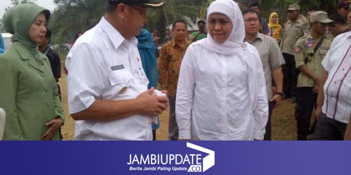 JAMBIUPDATE.COM, SAROLANGUN - Menteri Sosial, Khofifah Indar Parawansa, sekitar pukul 11.50 WIB, tiba di Desa Bukit Suban, Kecamatan Air Hutan, Kabupaten Sarolangun. Kedatangannya lebih awal dari Presiden RI, Joko Widodo, yang kini berada di Kota Jambi.
