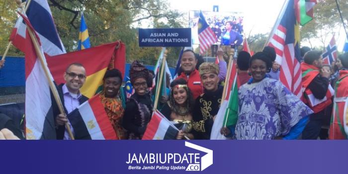 JAMBIUPDATE.COM, NEW YORK - Ada cerita menarik dalam pre event New York Marathon 2015. Faizin Kadni peserta asal Indonesia, mendapat kesempatan sebagai sebagai flag bearer atau pemegang bendera Indonesia pada H-1 puncak event.