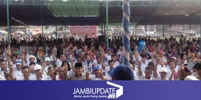 JAMBIUPDATE.COM, JAMBI - Bertempat di lapangan sepak bola, Desa Simpang Sungai Duren, Jaluko membludak dipadati ribuan warga Jaluko yang ingin nenyaksikan langsung pengukuhan Tim Keluarga (Tikar) HBA-Edi, Kamis (12/11).