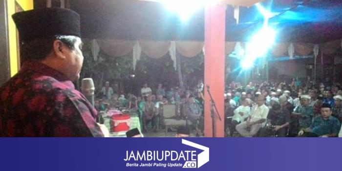 JAMBIUPDATE.COM, MERANGIN - Hujan deras mengguyur Desa Karang Berahi, Kecamatan Pamenang tidak menjadi penghalang bagi warga untuk di pengajian. Sabtu Malam, ribuan warga Desa Karang Berahi membludak saat melakukan silaturrahmi bersama calon Gubernur Jambi, H Hasan Basri Agus.
