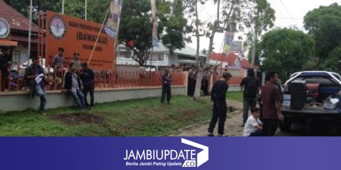 Dari Pantauan Jambiupdate.co, puluhan aparat dari Brimob Polda Jambi telah bersiaga dan menutup pagar Kantor Bawaslu. (dez)