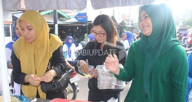 JAMBIUPDATE.COM, JAMBI - Pagi Senin, (30/11) istri gubernur dua periode Ratu Munowaroh bersama menantunya Sherrin Tharia melakukan blusukan di Pasar Talang Banjar menemui satu persatu pedagang yang menjajakan dagangannya yang terletak di jalan Orang kayo hitam tersebut.