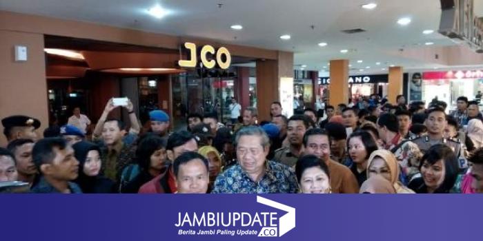 JAMBIUPDATE.CO, JAMBI - Mantan Presiden Republik Indonesia dua Periode, Susilo Bambang Yudhoyono sapa pengunjung Mall WTC Batanghari Jambi malam ini (2/12) sekitar pukul 20.00 WIB. SBY didampingi Hasan Basri Agus dan Edi Purwanto.