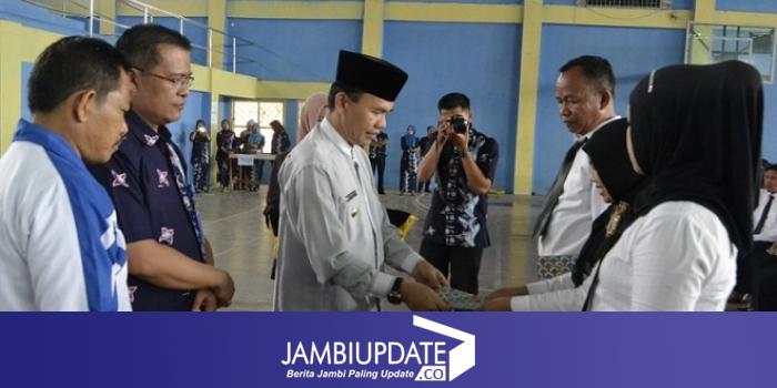 Bupati Kerinci Adi Rozal di dampingi Kepala BKD Kerinci Syahril Hayadi saat penyerahan SK pengangkatan CPNS Honorer K2 belum lama ini di Kerinci