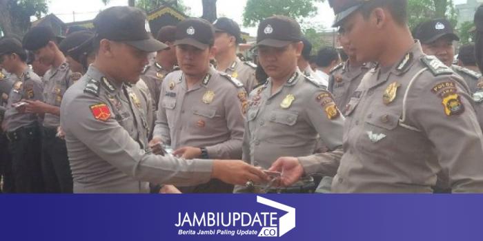 Usai gelar pasukan di lapangan Mapolda Jambi, para personel diberi uang saku, obat-obatan dan bekal makanan.