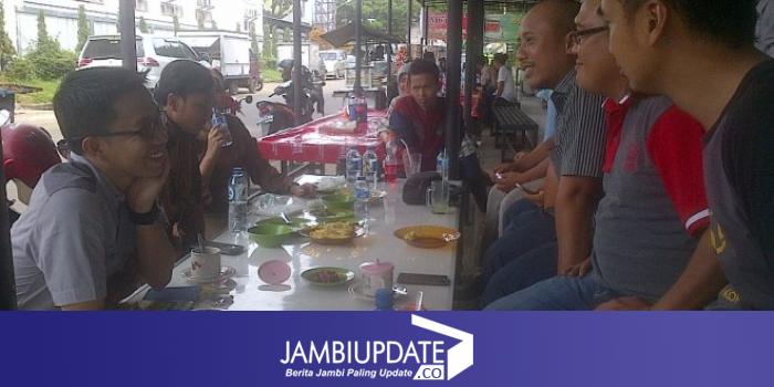 Edi Purwanto nongkrong dengan wartawan di samping BI Jambi