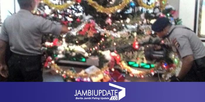 JAMBIUPDATE.CO, JAMBI - Untuk mengantisipasi hal-hal yang tidak diinginkan jelang Perayaan Hari Raya Natal, unit Jibom Gegana Brimob Polda Jambi, Kamis (24/12) sore melakukan sterilisasi sejumlah tempat ibadah di Kota Jambi.