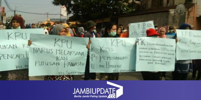 JAMBIUPDATE.CO, SUNGAIPENUH - Ratusan pendukung HM-NJ melakukan unjuk rasa di jalan raya dekat kantor KPU Sungaipenuh. Mereka menilai Pleno KPU menciderai hukum.
