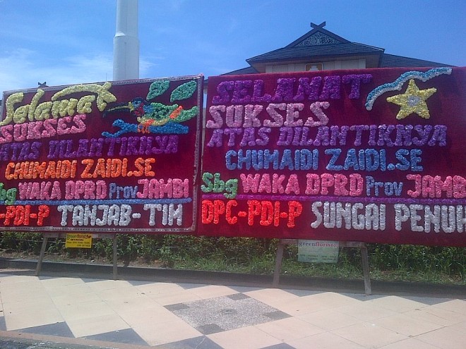 Pantauan jambiupdate.co, papan nama ucapan selamat sudah banyak dipajang di gedung rakyat itu.