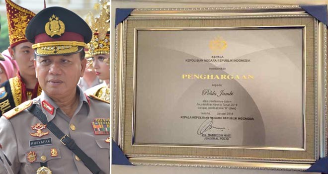 Atas keberhasilan ini, Polda Jambi mendapatkan piagam penghargaan dari Mabes Polri. Piagam tersebut ditandatangani langsung oleh Kapolri, Jenderal Badrodin Haiti, pungkasnya. (pds)
