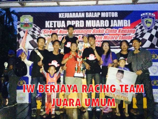 Hal ini terbukti, IW Racing Team berhasil keluar sebagai juara umum pada road race Ketua DPRD Muaro Jambi.