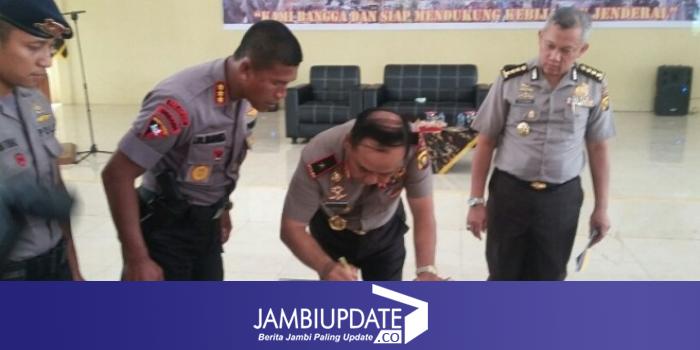 JAMBIUPDATE.CO, JAMBI - Kapolda Jambi, Brigjen Pol Musyafak, Kamis (18/2) sekitar pukul 10.25 WIB, menandatangi prasasti lapangan tembak Brimob Polda Jambi.