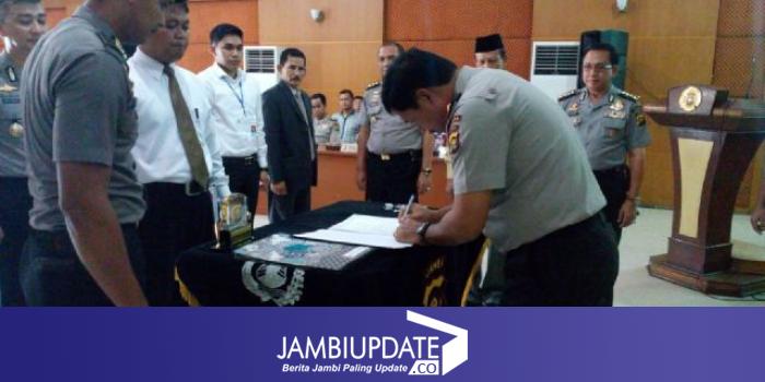 JAMBIUPDATE.CO, JAMBI Bertempat di Gedung Siginjai Mapolda Jambi, Senin (22/2) dilaksanakan penandatanganan pakta integritas penerimaan siswa prodik Sekolah Inspektur Polisi Sumber Sarjana (SIPSS) 2016.