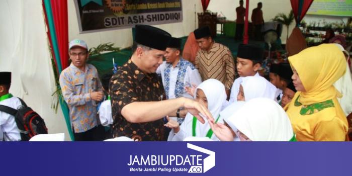 JAMBIUPDATE.CO, JAMBI - Walikota Jambi H. Syarif Fasha, ME, Jumat (26/2) membuka kegiatan Pentas Seni Kreasi (PENSI) dan Bazar SMK PGRI 2 Kota Jambi serta meresmikam Masjid As-Siddiiqi sekaligus mewisuda santri Tahfizd Alquran juz 29 dan 30 Sekolah Dasar Islam Terpadu (SDIT) AS-Siddiiqi.