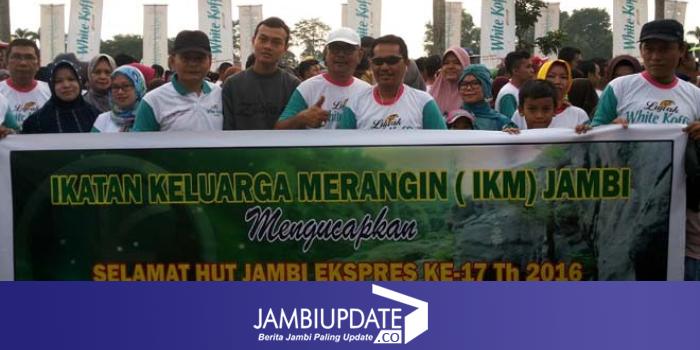 JAMBIUPDATE.CO, JAMBI Ikatan Keluarga Merangin (IKM) Jambi terus menunjukkan eksistensinya di Kota Jambi. Buktinya, IKMJ yang diketuai oleh Nurman Jamal intens mengikuti berbagai acara, teranyar ikut jalan santai yang digelar Jambi Ekspres (JE).