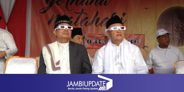 JAMBIUPDATE.CO, SAROLANGUN-Pada acara Pesona Gerhana Matahari Total Sarolangun 2016 yang digelar di Tepian Ancol, Senin pagi (9/3). Drs H Cek Endra dalam kata sambutannya mengatakan fenomena alam GMT ini adalah bukti kebesaran Allah SWT, untuk itu seluruh umat islam hendaklah banyak melakukan istiqfar dan berzikir.