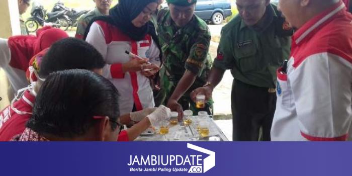 JAMBIUPDATE.CO, MUARASABAK - Sebanyak 26 anggota TNI dari Koramil 419/01 Muarasabak dites urine. Ini dilakukan untuk mengetahui apakah ada anggota yang menggunakan narkoba atau tidak.