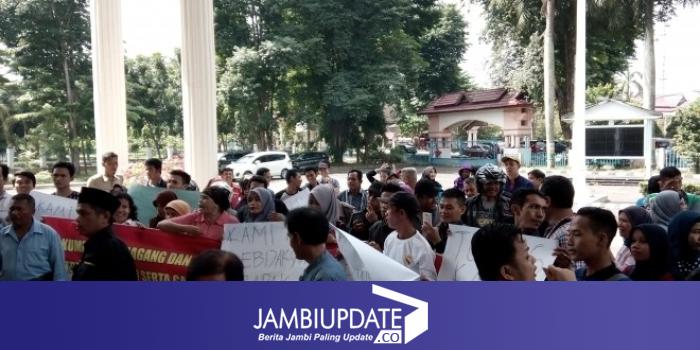 JAMBIUPDATE.CO, JAMBI-Ratusan pedagang eks istana anak-anak gelar aksi damai di DPRD Kota Jambi siang ini (21/3). Mereka menolak rencana Pemkot yang hendak memindahkam mereka dari istana Anak-anak.