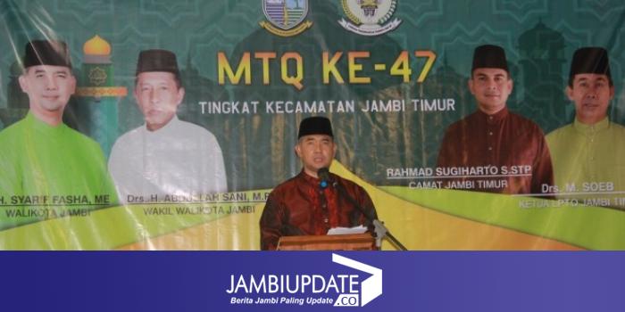 "Musabaqah Tilawatil Quran (MTQ) juga sebagai upaya menyuguhkan nuansa kehangatan spiritualitas dan pesona budaya keagamaan khas Indonesia termasuk budaya masyarakat kita di Kota Jambi ini. Bagi kita MTQ tidak hanya menjadi cermin kesalihan spiritual, tetapi juga amat kental dengan gambaran aktifitas sosial keagamaan. Hal ini tergambar manakala hampir seluruh komponen umat terlibat dalam kegiatan tersebut secara tulus dan memfungsikannya sebagai wahana syiar Islam dengan aroma budaya lokal yang Islami di Kecamatan Jambi Timur ini," ungkapnya.