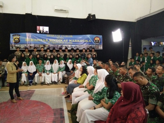 Diketahui, dalam diskusi itu sendiri, pihak panitia pelaksana dalam hal ini Bidang Humas Polda Jambi menghadirkan lima narasumber. Diantaranya, Direktur Reserse Narkoba Polda Jambi Kombes Pol Krisnandi, Kabid Pemberantasan Badan Narkotika Nasional Provinsi (BNNP) Jambi AKBP Marlian Anshori, Pakumrem 042/Garuda Putih Mayor Sudiyo. Selanjutnya, dua pemateri lainnya dari Bea Cukai dan Pakar Hukum Universitas Batanghari.