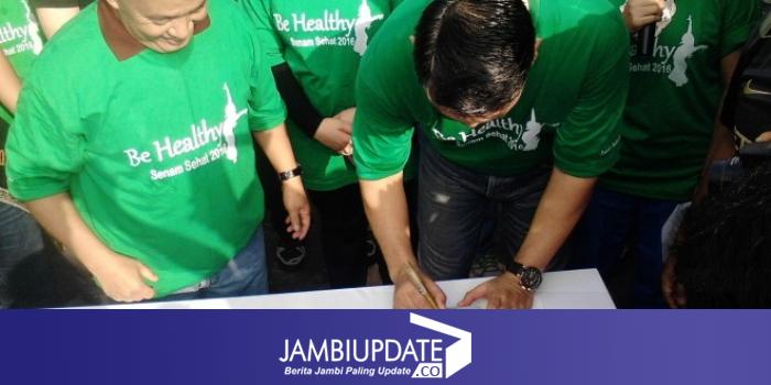 iklan Walikota Jambi SY Fasha saat menandatangani prasasti jomblo di kawasan Kota Baru Jambi Minggu pagi (27/3)