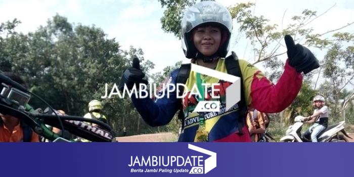 Ada satu perempuan yang masih berusia 26 tahun ikut menguji adrenaline denga menggeber trail tungangannannya, ikut serta menjelajahi bumi Tanah Pilih siang ini.