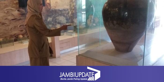 Tempayan berukuran raksasa itu disimpan khusus dalam kaca di Museum Jambi. Posisinya tepat berada di tengah keramik lainnya.