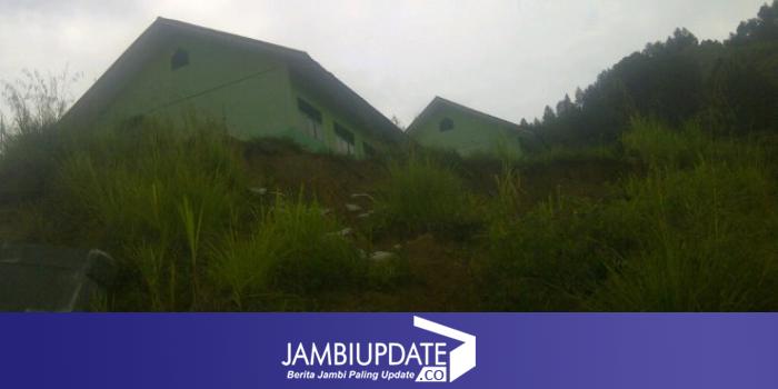 JAMBIUPDATE.CO, SUNGAIPENUH- Longsor kembali terjadi di Sungaipenuh. Kali ini menimpa bangunan MAN 2 Sungaipenuh yang baru dibangun di Bukit Desa Air Teluh, Kecamatan Kumun Debai Jumat (8/4).