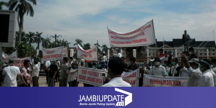 JAMBI, JAMBIUPDATE- Menyikapi situasi yang berkembang tentang dinamika pendamping desa di kementrian Desa dan PDT, siang ini (11/4) sekitar pukul 10.20Wib, ratusan masyarakat yang mengatas namakan barisan nasional pendamping desa Provinsi Jambi menggelar aksi damai.