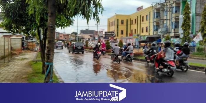 JAMBIUPDATE.CO, JAMBI Hujan deras yang menguyur Kota Jambi sekitar setengah jam lamanya Mi/4)nggu sore ini (17, membuat ruas di depan mini market Fresco tepatnya di Jl. Kapten Pattimura Kenali Besar Kota Baru Kota Jambi, tergenang air.