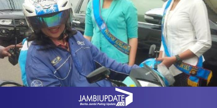 Polwan yang membagikan helm ini merupakan anggota dari Direktorat Lalu Lintas Polda Jambi. (pds)