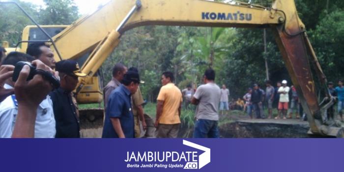 JAMBIUPDATE.CO, SUNGAIPENUH- Walikota Sungaipenuh, Asafri Jaya Bakri langsung meninjau jalan yang amblas di KM 4, Kecamatan Sungai Bungkal Selasa (26/4). Dua unit alat berat langsung diturunkan untuk menangani jalan yang amblas.