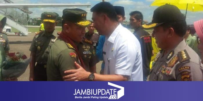 JAMBIUPDATE.CO, JAMBI - Kepala Staf Angkatan Darat, Jenderal TNI Mulyono, sekitar pukul 11.30 siang ini (27/4) mendarat di Bandara Sultan Thaha Jambi.