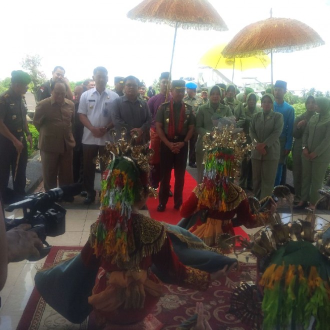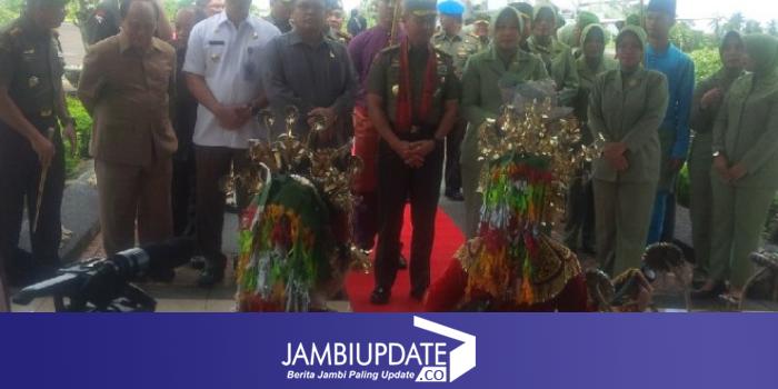 JAMBIUPDATE.CO, JAMBI - Mendarat di Bandara Sultan Thaha Jambi, Rabu (27/4) sekitar pukul 11.30 WIB, Kepala Staf Angkatan Darat, Jenderal TNI Mulyono, langsung disambut dengan tari sekapur sirih.