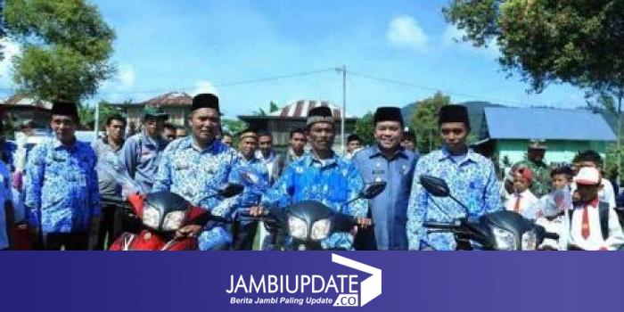 JAMBIUPDATE.CO, MERANGIN-Bupati Merangin Al Haris memberikan hadiah motor gratis bagi guru yang mengajar di daerah terpencil di Merangin.