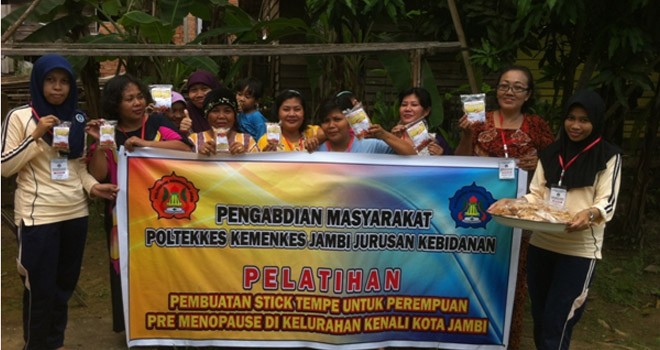 JAMBIUPDATE.CO, JAMBI-Sejalan dengan kewajiban perguruan tinggi untuk menyelenggarakan pengabdian masyarakat untuk itu staf pendidik Poltekkes Kemenkes Jambi melakukan pengabdian masyarakat yang merupakan bentuk dari partisipasi untuk meningkatkan kesejahteraan masayarakt di sekitar kampus jurusan kebidanan. Kegiatan dilakukan bersama mahasiswa dan kegiatan ini berbentuk pelatihan tentang pembuatan stick tempe.