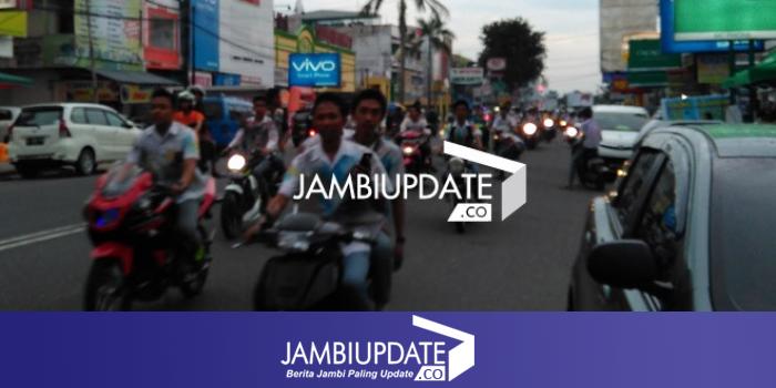 JAMBIUPDATE.CO, JAMBI - Puluhan siswa dengan seragam sekolah yang penuh coretan, tetap lakukan aksi konvoi menggunakan sepeda motor melintasi sejumlah ruas jalan utama di Kota Jambi pasca pengumuman kelulusan Ujian Nasional (UN) sore ini, Sabtu (7/5).