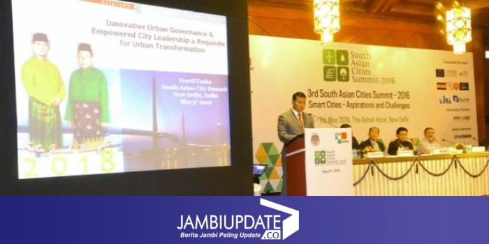 JAMBIUPDATE.CO, NEW DELHI - Setelah beberapa kali diundang menjadi pembicara diberbagai event nasional maupun internasional, kini Wali Kota Jambi H. Syarif Fasha, kembali diminta menjadi nara sumber pada SOUTH ASIAN CITIES SUMMIT 2016 yang berlangsung di New Delhi India.