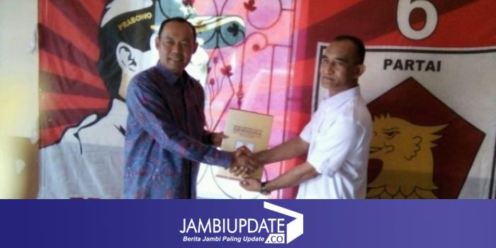 JAMBIUPDATE.CO, MUARATEBO - Bakal calon Bupati incumbent, Sukandar siang ini (21/5) sekitar pukul 11.20 Wib mengembalikan formulir pendaftaran ke Partai Gerindra.