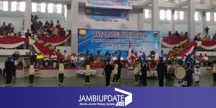 JAMBIUPDATE.CO, MUARABULIAN - Senin (23/5) hari ini pukul 14.30 wib acara Pekan Olahraga Pelajar Daerah Provinsi Jambi yang digelar di Kabupaten Batanghari resmi dibuka oleh Gubernur Jambi yang diwakiki Staf Ahli Gubernur, Ambo Tuo yang didampingi langsung oleh Bupati Batanghari Syahirsah.