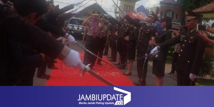Proses penyambutan masih berlangsung. Seluruh pejabat utama Polda Jambi langsung berjejer dari pagar hingga pintu masuk ke Mapolda Jambi.